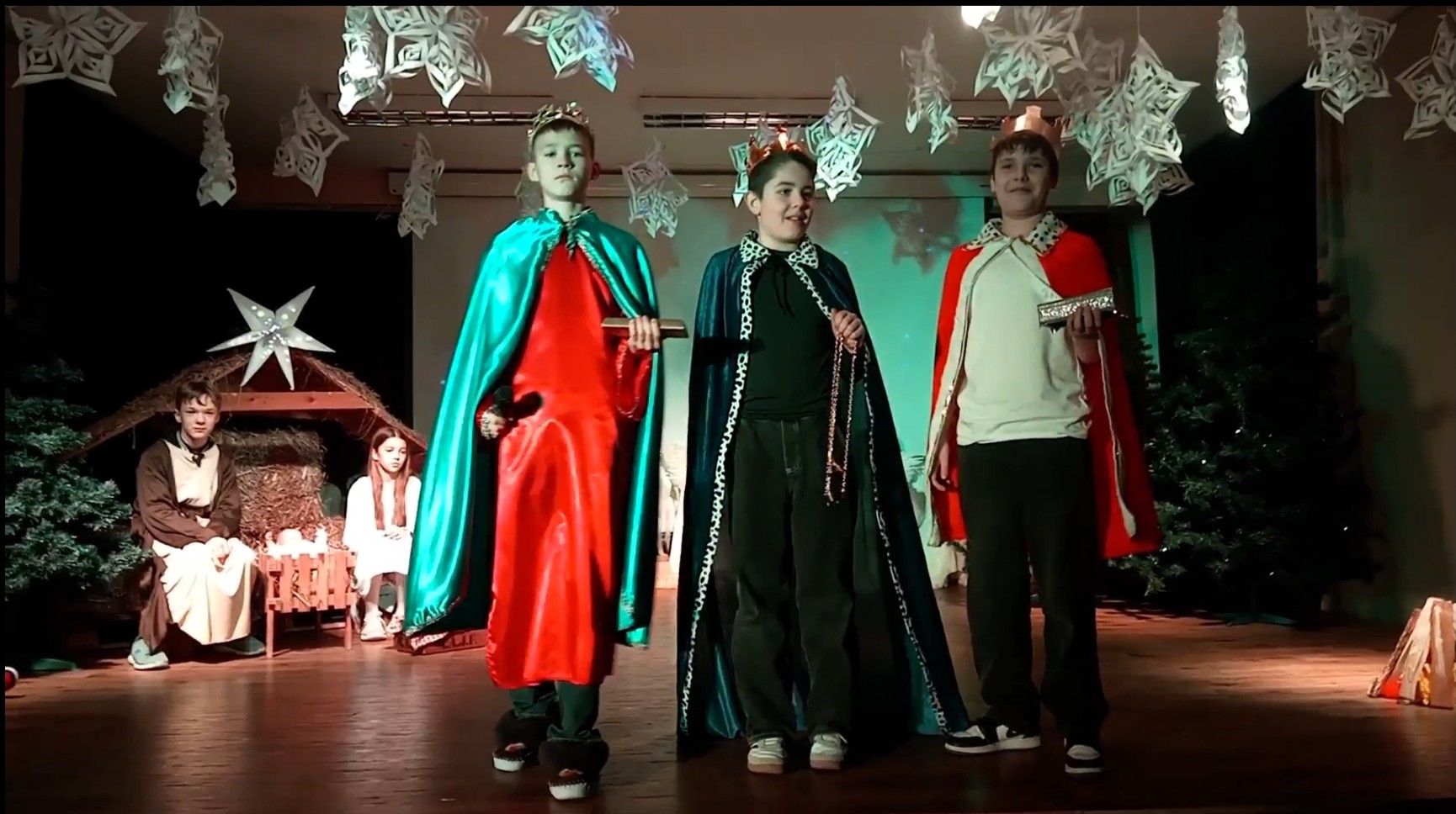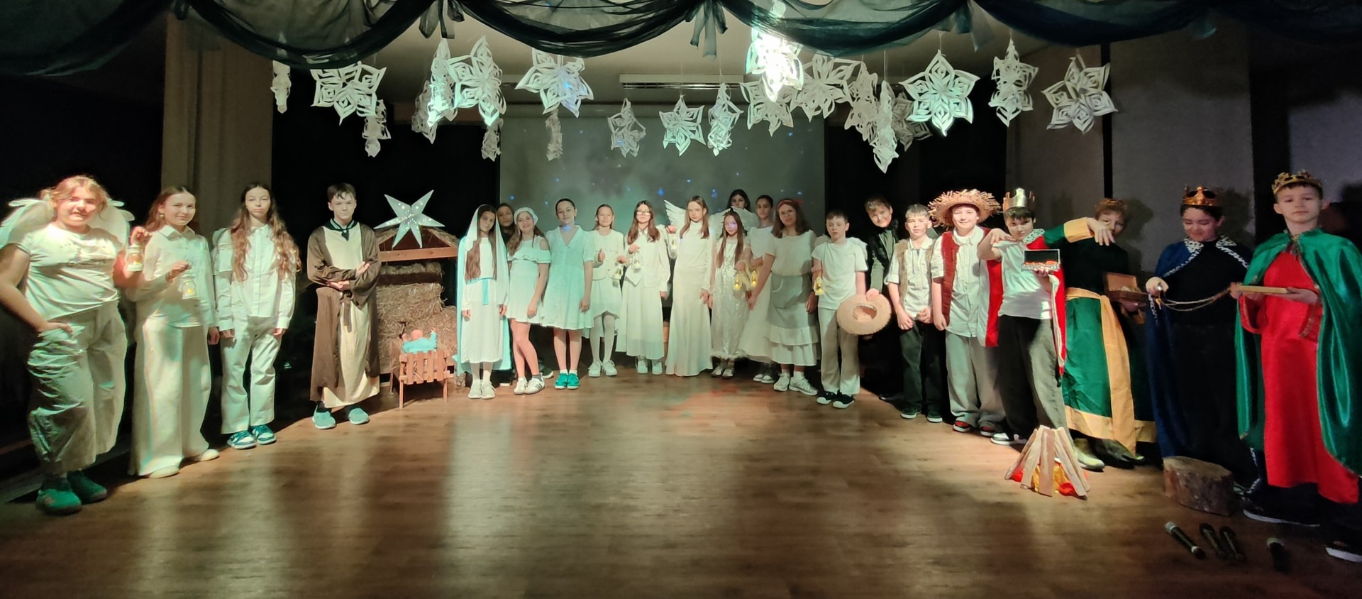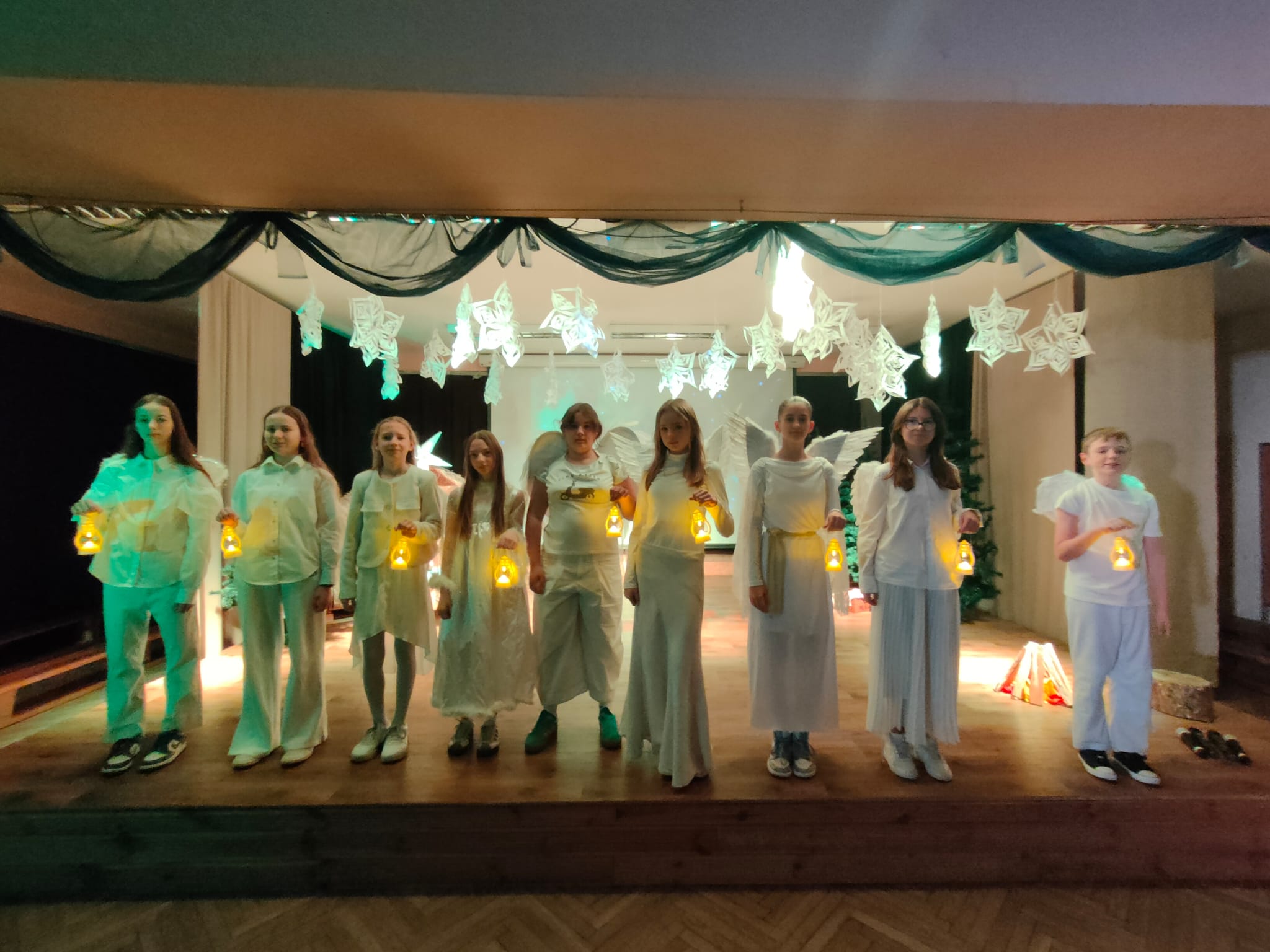 W tym roku jasełka zostały przygotowane przez uczniów klasy 6a, 6c przy dużym wsparciu uczennic z kl. 7a, pod czujnym okiem wychowawców: pani A. Milczarek oraz pani P. Świnogi.