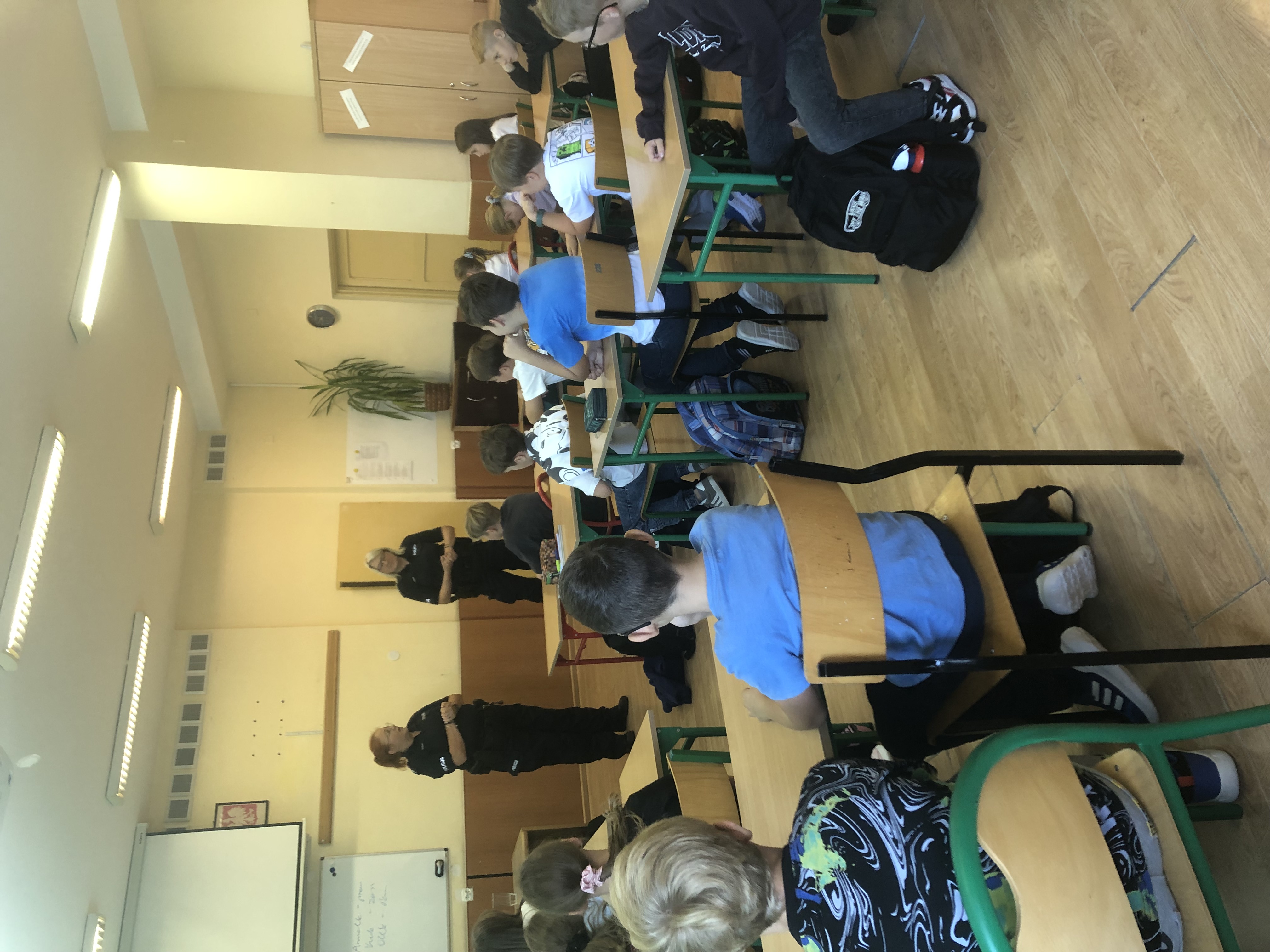 Dnia 15.09.2025r. w ramach działań profilaktycznych, zaprosiliśmy do szkoły przedstawicieli Policji, którzy poprowadzili zajęcia w klasach pierwszych, mające na celu kształtowanie prawidłowych nawyków komunikacyjnych oraz uświadamianie, z jakimi zagrożeniami mogą się spotkać podczas drogi do i ze szkoły. W klasach starszych natomiast spotkanie dotyczyło odpowiedzialności prawnej nieletnich w świetle obowiązujących przepisów. W czasie zajęć omówiono pojęcia czynu karalnego, przejawów demoralizacji, środki oddziaływania wychowawczego. Tematem spotkania był również hejt w Internecie oraz konsekwencje związane z zagadnieniem, a także zagrożenia z jakimi młodzi ludzie mogą spotkać się korzystając z sieci. Z młodzieżą omówiono jak ważne jest przestrzeganie praw człowieka, zarówno w świecie realnym jak i wirtualnym oraz konsekwencje prawne związane z zagadnieniem.